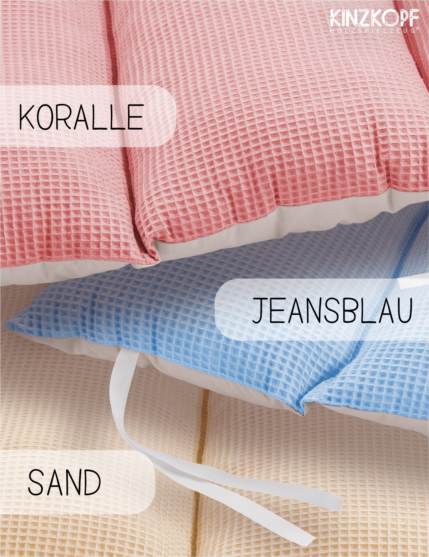• Mit Befestigungsbändern: Damit das Kissen im Kletterbogen nicht verrutschen kann, sind an allen vier Ecken Bänder zum Festbinden angebracht.