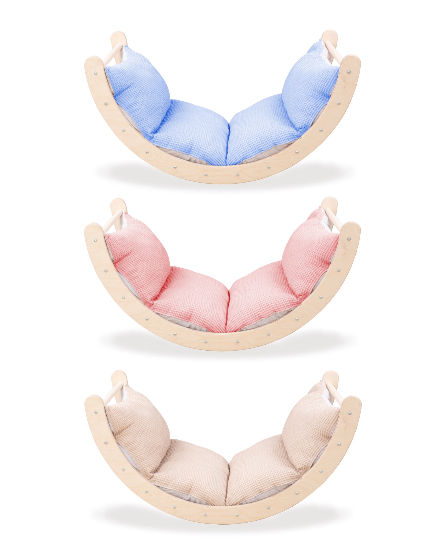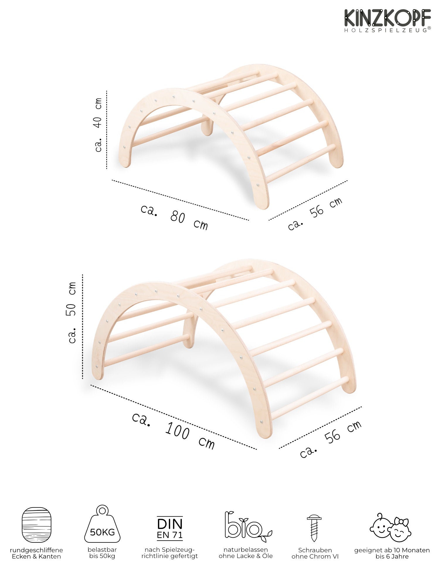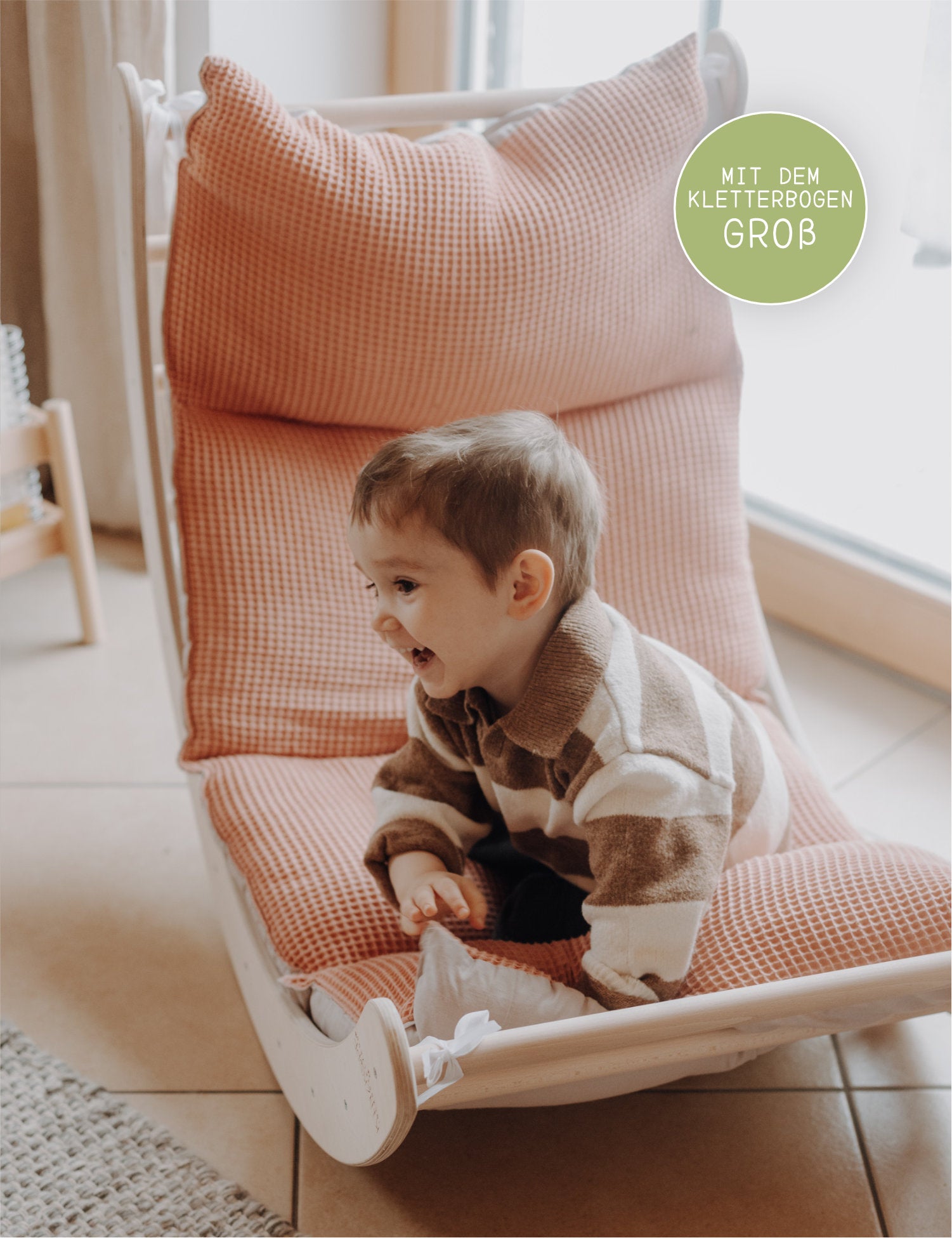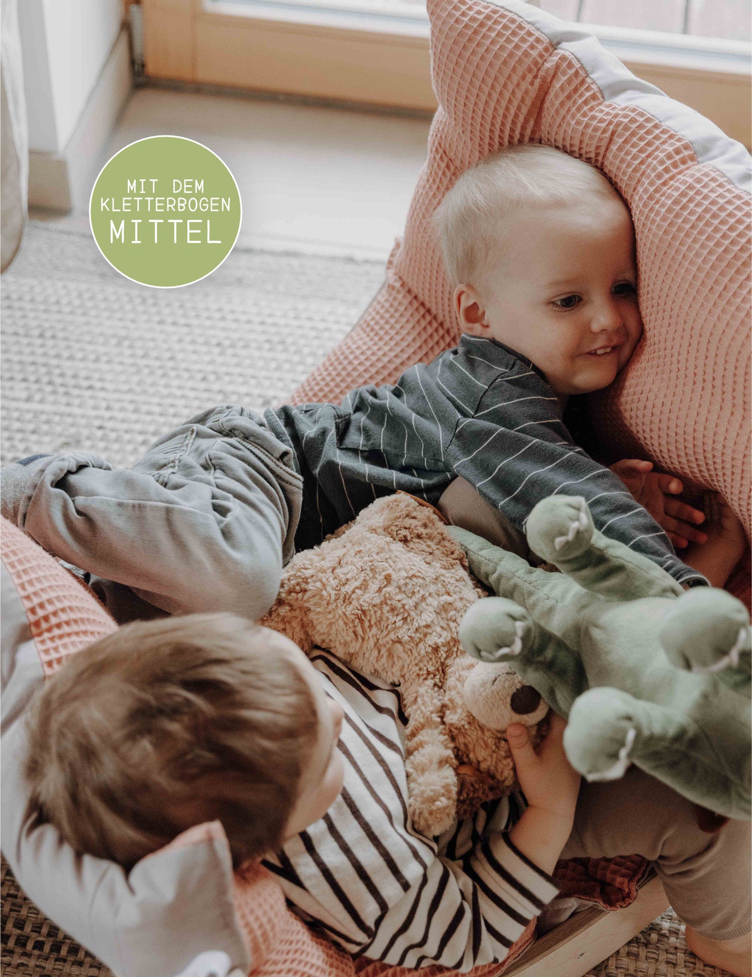 Ein Set aus Kletterbogen (Größe wählbar) und maßgeschneidertem Kuschelkissen (Farbe wählbar).