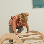 Ein beliebtes Kletterspielzeug ist das Pikler-Dreieck, ein Klettergerüst aus Holz, das Kinder in ihrer Bewegungsentwicklung unterstützt. Die Höhe ist bei den verschiedenen Modellen einstellbar, sodass für jedes Kleinkind etwas dabei ist. Das Pikler-Dreieck kann drinnen und draußen verwendet und durch Zubehör wie Rutschbretter erweitert werden. Es ermöglicht deinem Kind, in seinem eigenen Tempo zu lernen, Grenzen auszutesten und Selbstbewusstsein aufzubauen.