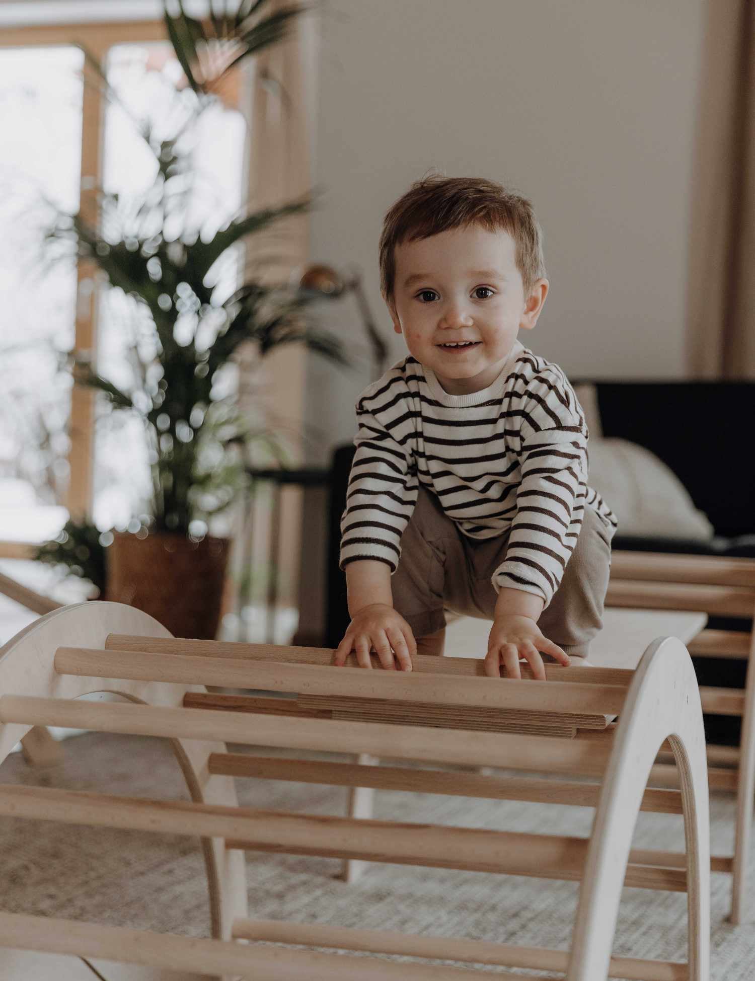 Spielend Lernen - Das Pikler-Prinzip. Kletterelemente von Kinzkopf unterstützen frühzeitig die motorische Entwicklung des Kindes und fördern Selbstvertrauen und Geschicklichkeit.