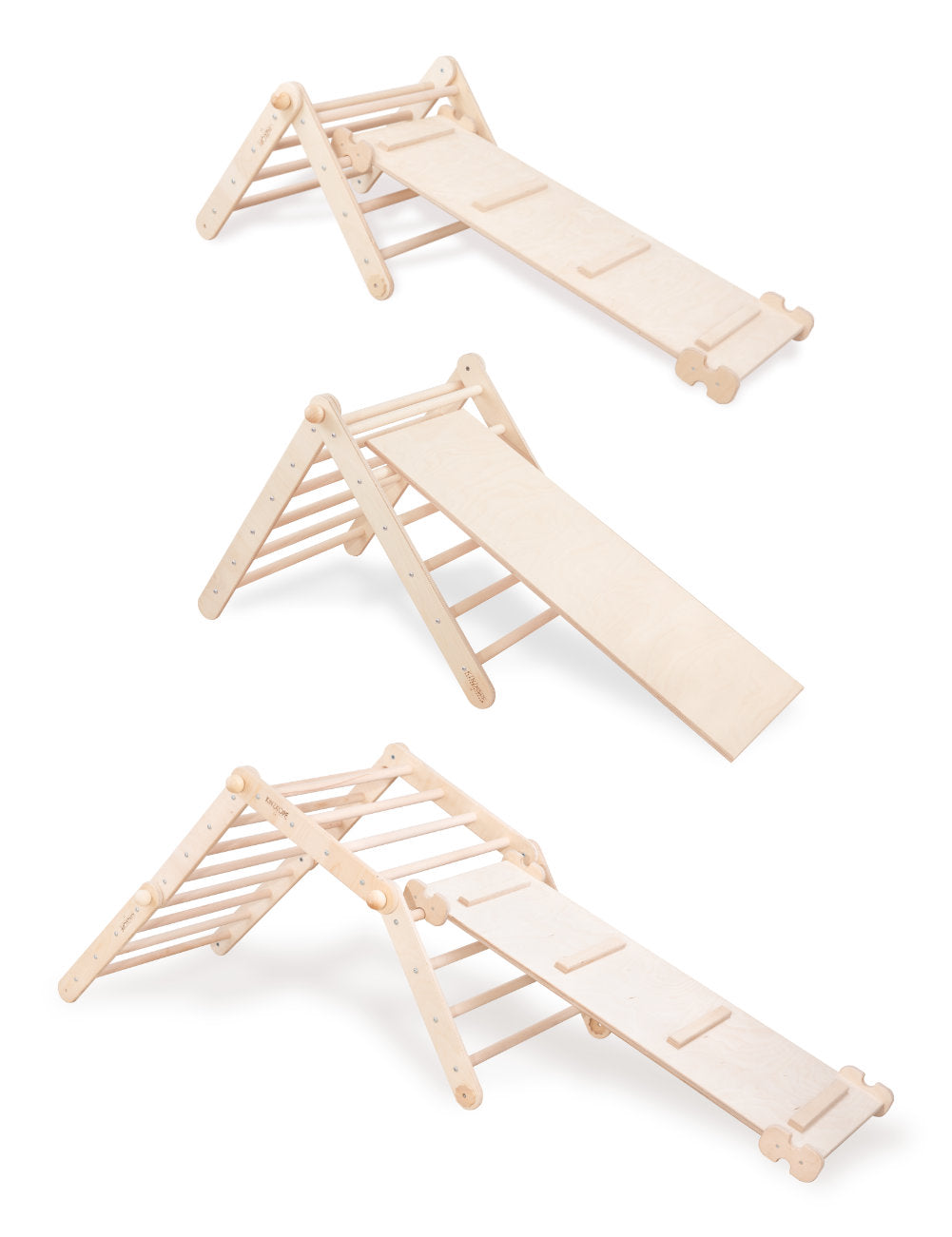 Stell Dir Deine perfekte Kombination zusammen! Kletterdreieck aus drei Varianten wählbar. Anbauteil aus vier Varianten wählbar.