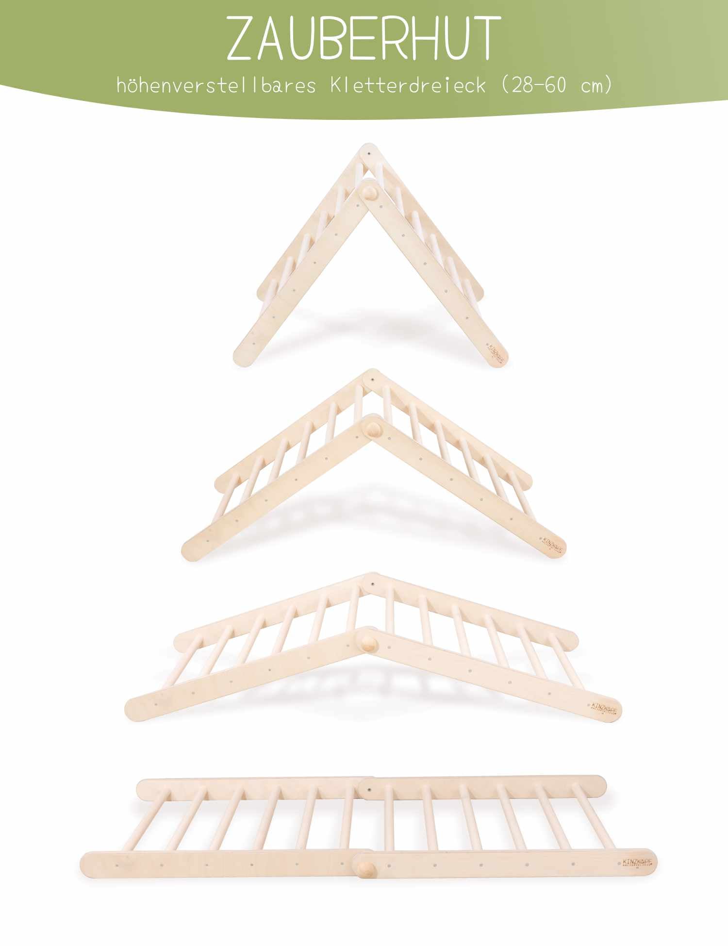 ZAUBERHUT: unser klassisches Dreieck nach Pikler; höhenverstellbar von 28 bis 60 cm.